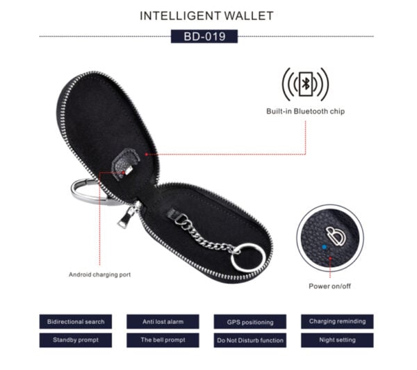 Έξυπνη Δερμάτινη Κλειδοθήκη - Μπρελόκ Antilost BLuetooth GPS με Σύστημα Συναγερμού BD-019