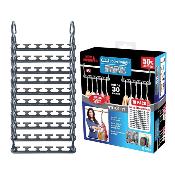 Στην συσκευασία συμπεριλαμβάνονται 10 τεμάχια που σας επιτρέπουν να κρεμάσετε έως και 50 ρούχα στο σύνολο τους.