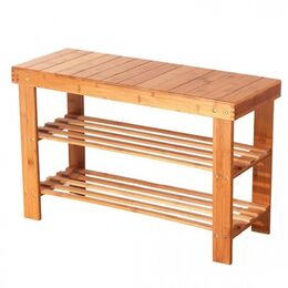 'Εξυπνη Ξύλινη Bamboo Παπουτσοθήκη - Stand με 2 Ράφια και Καπάκι για Κάθισμα 70 x 28 x 44cm
