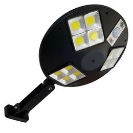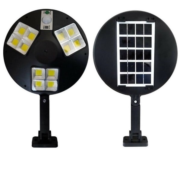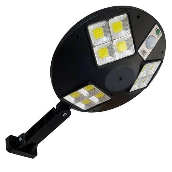 Ηλιακό φωτιστικό δρόμου σε μαύρο χρώμα, που συγκεντρώνει και αποθηκεύει ηλιακή ενέργεια για τη λειτουργία του, ώστε να μη χρειάζεται να συνδεθεί σε παροχή ρεύματος. Διαθέτει ανιχνευτή κίνησης για να ενεργοποιείται όταν εντοπίσει κίνηση εντός της εμβέλειάς του, αλλά και τηλεκοντρόλ ώστε να το χειρίζεστε από απόσταση.