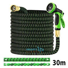 Έξυπνο Ενισχυμένο Επεκτεινόμενο Λάστιχο Κήπου & Βεράντας 30m με 7 σε 1 Πιστόλι & Μεταλλικό Ρακόρ - Πράσινο - Μαύρο
