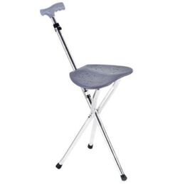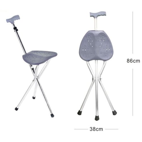 Μπαστούνι στήριξης με αναδιπλούμενο σκαμπό. Το μπαστούνι έχει 3 ποδαράκια με λαστιχένιο πώμα που παρέχουν σταθερότητα, αντιολισθητικές λαβές από μαλακό σφουγγάρι και αναδιπλούμενο σκαμπό. Το σκαμπό είναι πλαστικό, ανοίγει εύκολα αλλά σταθερά και σας ξεκουράζει σε περίπτωση πολύωρης ορθοστασίας. Εάν θέλετε να ξεκουραστείτε ενώ περπατάτε, ξεδιπλώστε το κάθισμα στο μπαστούνι και έχετε ένα τρίποδο κάθισμα. Όταν κάθεστε, η λαβή που προεξέχει πρέπει να είναι μπροστά σας. Αυτό σας επιτρέπει να κρατιέστε από κάπου ενώ κάθεστε. Επειδή το μπαστούνι είναι κατασκευασμένο από αλουμίνιο, είναι ελαφρύ, αλλά πολύ ανθεκτικό. Άνετο και εύκολο στην μεταφορά καθώς είναι ελαφρύ και πτυσσόμενο για να μην πιάνει μεγάλο όγκο. Ιδανικό δώρο για τον τον παππού και την γιαγιά, μπορούν να το χρησιμοποιήσουν στην εκκλησία, στις διακοπές, στον περίπατο, στην παραλία ή ακόμα και στις ατελείωτες ουρές των δημόσιων υπηρεσιών.