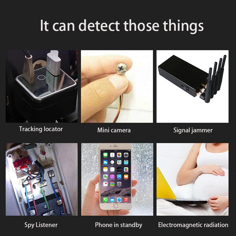 Ανιχνεύει οποιαδήποτε ασύρματη συσκευή που χρησιμοποιεί ραδιοσυχνότητα, συμπεριλαμβανομένων κοριούς ήχου, κάμερες Wi-Fi και άλλες συσκευές συνδεδεμένες με Wi-Fi.