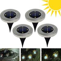 Τέσσερα καρφωτά ηλιακά φωτιστικά εξωτερικού χώρου - κήπου ψυχρού φωτισμού LED με αισθητήρα φωτός - φωτοκύτταρο. Το καθένα είναι αυτόνομο, με το δικό του ενσωματωμένο ηλιακό πάνελ, εξοπλισμένο με 4 λαμπτήρες LED.