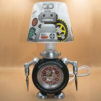 Το παιδικό επιτραπέζιο φωτιστικό – πορτατίφ με ρολόι και σχέδιο ρομπότ αποτελεί μια ιδανική προσθήκη στο δωμάτιο κάθε παιδιού, συνδυάζοντας τη λειτουργικότητα ενός φωτιστικού με τη χαριτωμένη αισθητική ενός ρομπότ. Σε γκρι-μαύρο χρώμα, αυτό το φωτιστικό προσθέτει μια μοντέρνα πινελιά στο χώρο, ενώ το ενσωματωμένο ρολόι