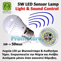 Λάμπα οικονομίας LED με φωτοκύτταρο ενεργοποιείται αυτόματα το βράδυ και απενεργοποιείται την ημέρα. Διαθέτει αισθητήρα ήχου και ανάβει αυτόματα με κάθε οξύ θόρυβο. Παραμένει αναμμένη για 45 δευτερόλεπτα και σβήνει αυτόματα.
