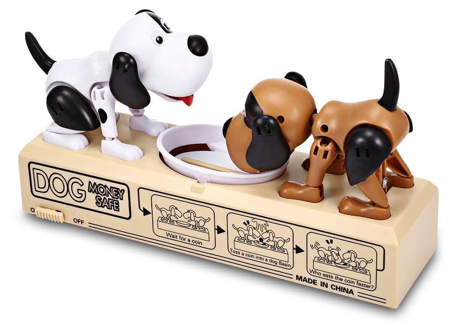 Πρόκειται για ένα ηλεκτρικό μηχάνημα, το οποίο θα «φάει μέχρι και το τελευταίο κέρμα«και θα τα αποθηκεύσει στο κουτί που βρίσκεται κάτω από αυτό. Οι κινήσεις του σκύλου είναι τόσο ρεαλιστικές θα θέλετε να δείτε αυτό το αξιολάτρευτο παιχνίδι να ζωντανεύει ξανά και ξανά.