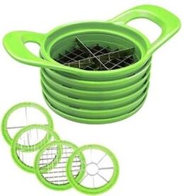 Βάλτε τα στον επαναστατικό πολυκόφτη που κόβει φρούτα και λαχανικά σε λωρίδες, κύβους, τέταρτα και τρίγωνα, καθώς και λεπίδες για ψιλοκομμένη σαλάτα. Πρόκειται για ένα εξαιρετικό προϊόν, υψηλής ποιότητας, που πρέπει να υπάρχει σε κάθε κουζίνα.