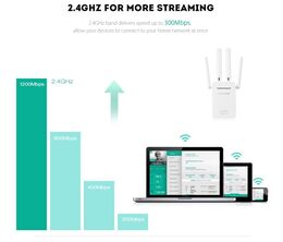 Ενισχύστε την υπάρχουσα σύνδεση Wi-Fi σας με το 300Mbps Wi-Fi repeater 2,4Ghz και απολαύστε βελτιωμένη ασύρματη κάλυψη σε συσκευές Wi-Fi όπως οι φορητοί υπολογιστές, ταμπλέτες και Smatphones σε όλο το σπίτι, ακόμα και στους εξωτερικούς χώρους.