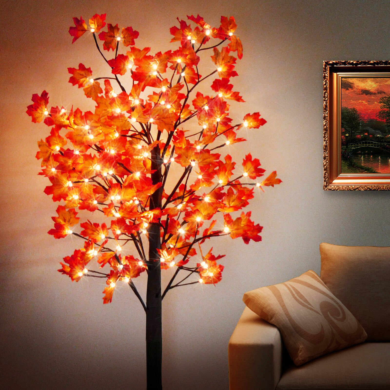 Εντυπωσιακό Διακοσμητικό Φωτιζόμενο Δέντρο 160cm με Πορτοκαλί Φθινοπωρινά Φύλλα & Κόκκινο Φωτισμό Led