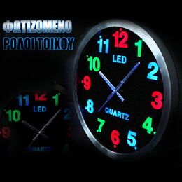 Εντυπωσιακό Μεγάλο Ρολόι Τοίχου 30cm με Πολύχρωμο Φωτισμό LED