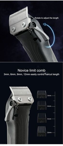 Επαγγελματική κουρευτική μηχανή για μαλλιά και γένια με ρυθμιζόμενο μήκος κοπής: 3-12mm σε επίπεδα. Επαναστατική σχεδίαση που επιτρέπει την ρύθμιση του μήκους κοπής με 2 μόνο εξαρτήματα.