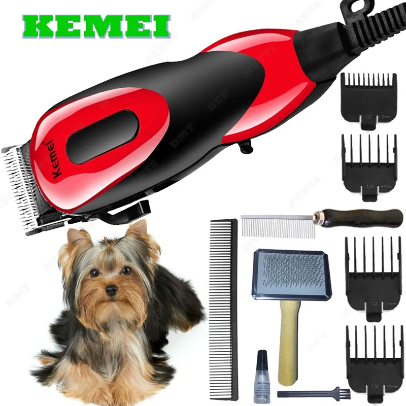 Επαγγελματική Κουρευτική Μηχανή Για Κατοικίδια, Ρεύματος, 12W, Πλήρες Σετ, με 4 Σκάλες, 3 Χτένες, Δοχείο Λαδιού & Βουρτσάκι, Kemei®