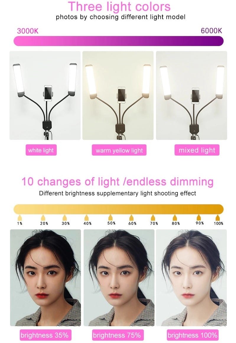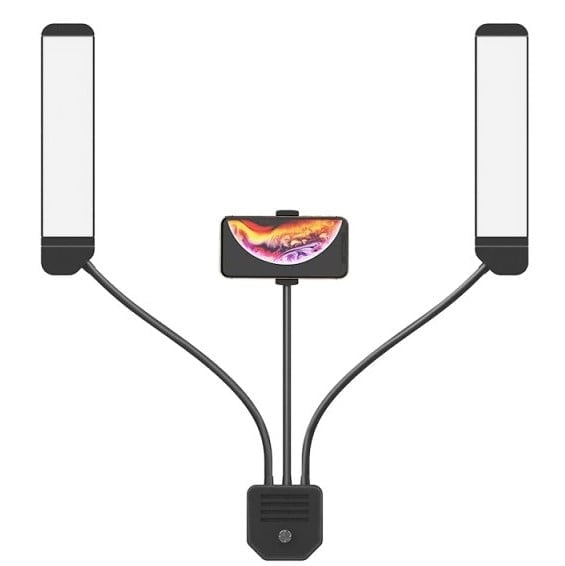 Επαγγελματικό Διπλό Φωτιστικό LED USB 35W με Βάση Κινητού - 3 Ρυθμίσεις Φωτισμού & Ρυθμιζόμενη Φωτεινότητα RK39 - Μαύρο