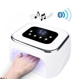 Φουρνάκι νυχιών με ηχείο bluetooth και 4 επιλογές χρόνου 10s, 30s, 60s και 90s. Λειτουργεί αυτόματα μόλις τοποθετήσετε τα χέρια σας μέσα, ενώ έχει μικρή οθόνη που δείχνει την αντίστροφη μέτρηση του χρόνου που απομένει για να τελειώσει το πρόγραμμα που επιλέξατε.