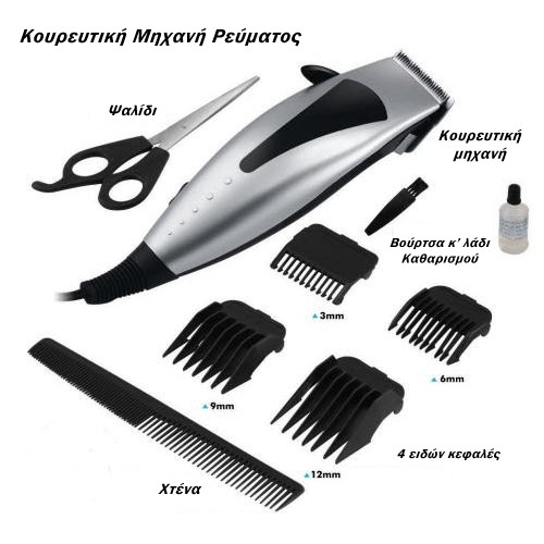 Επαγγελματικό Σετ Kουρευτικής Μηχανής Ρεύματος με Ψαλίδι και Χτένα
