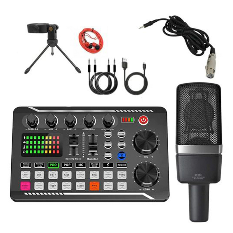 Επαγγελματικό Σετ με Μικρόφωνο και Κάρτα Ήχου Andowl με Τρίποδο για Live Streaming– Μαύρο