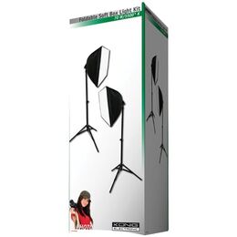 Αυτό το πτυσσόμενο στούντιο φωτογράφισης συμπεριλαμβάνει δύο λαμπτήρες εξοικονόμησης ενέργειας σπιράλ, δύο μαλακά κουτιά (soft box), δύο τρίποδα και μια τσάντα μεταφοράς. Οι λαμπτήρες εκπέμπουν χρώμα θερμοκρασίας 5500° Kelvin.