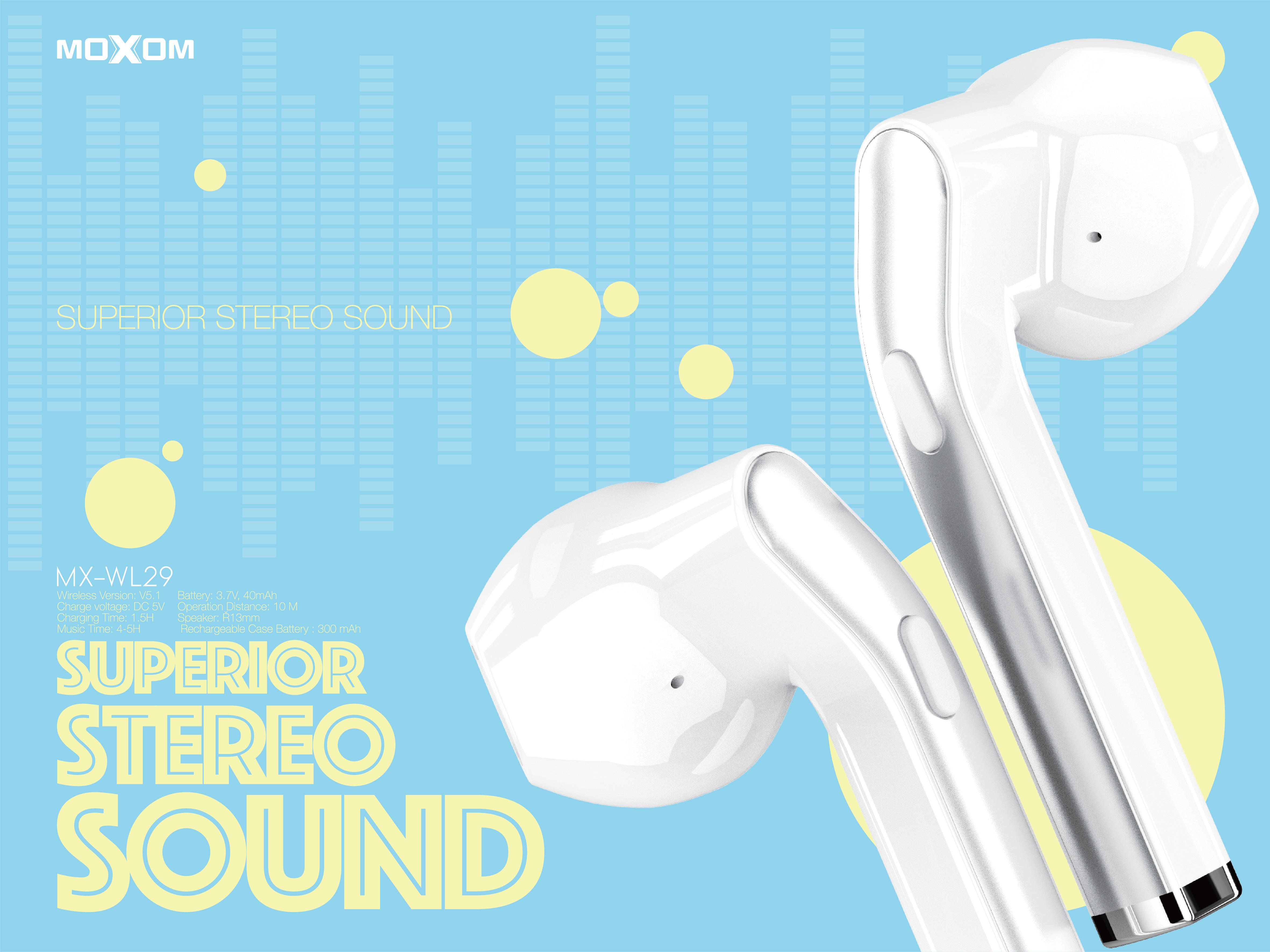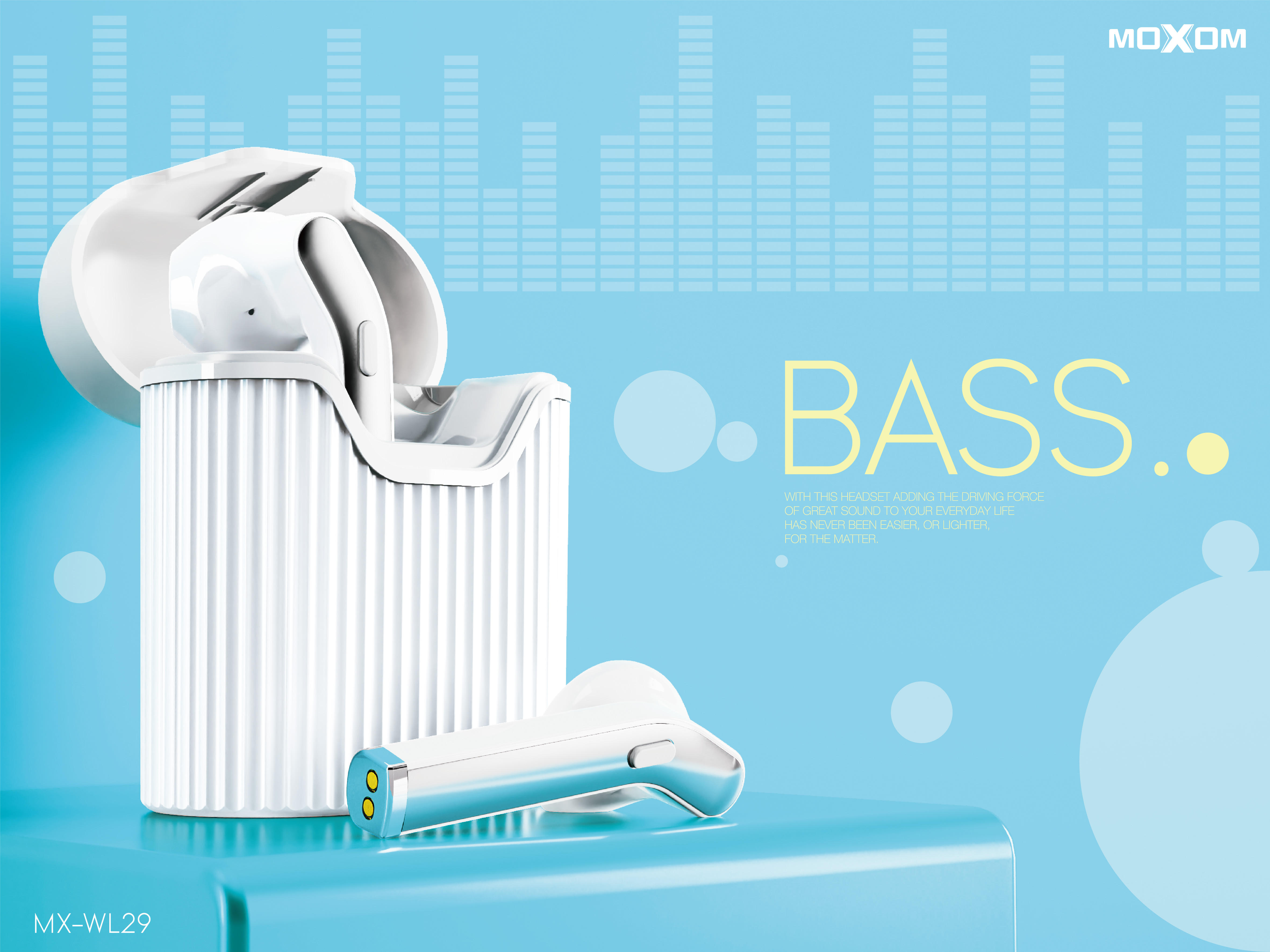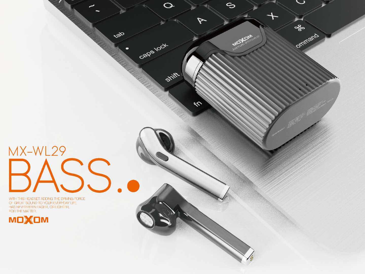 Επαναφορτιζόμενα Ασύρματα Ακουστικά Bluetooth με Θήκη Φόρτισης MOXOM