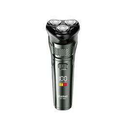 Επαναφορτιζόμενη Αδιάβροχη Ηλεκτρική Ξυριστική Μηχανή Με Τριπλή Περιστροφική Λεπίδα Kemei