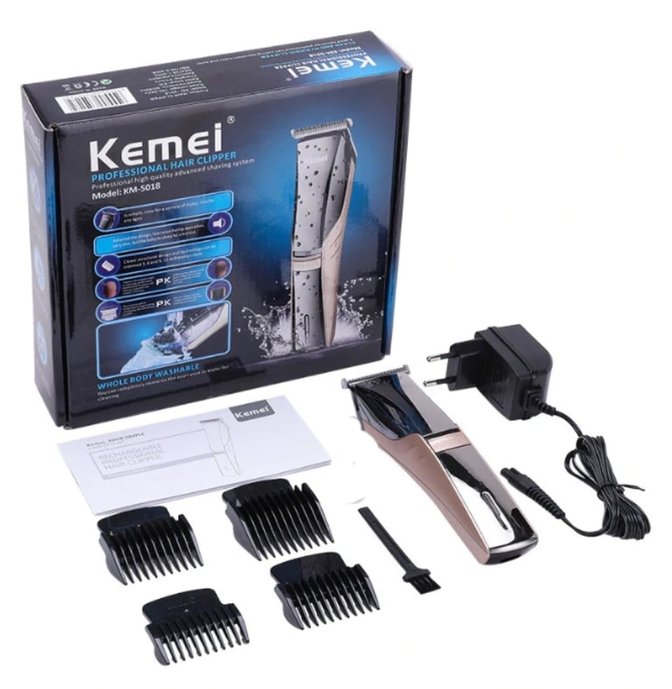 Επαναφορτιζόμενη Κουρευτική Μηχανή KEMEI με 4 Κεφάλες - Σκάλες Κουρέματος για Trimming & Fading