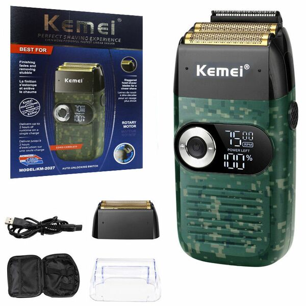 Επαναφορτιζόμενη ξυριστική μηχανή για επαγγελματίες και μη σε πράσινο χρώμα της εταιρίας Kemei.