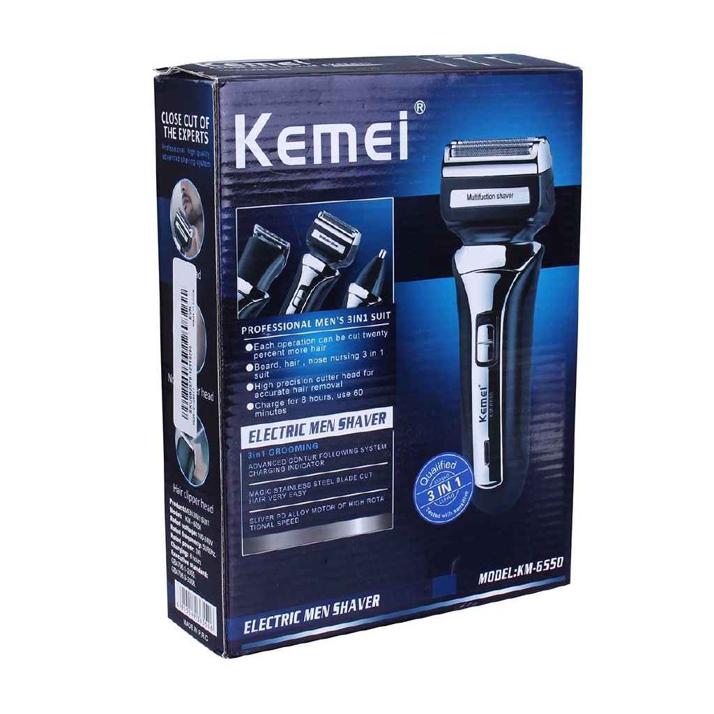 Επαναφορτιζόμενη Ξυριστική Μηχανή - Trimmer 3 σε 1 Kemei KM-6550