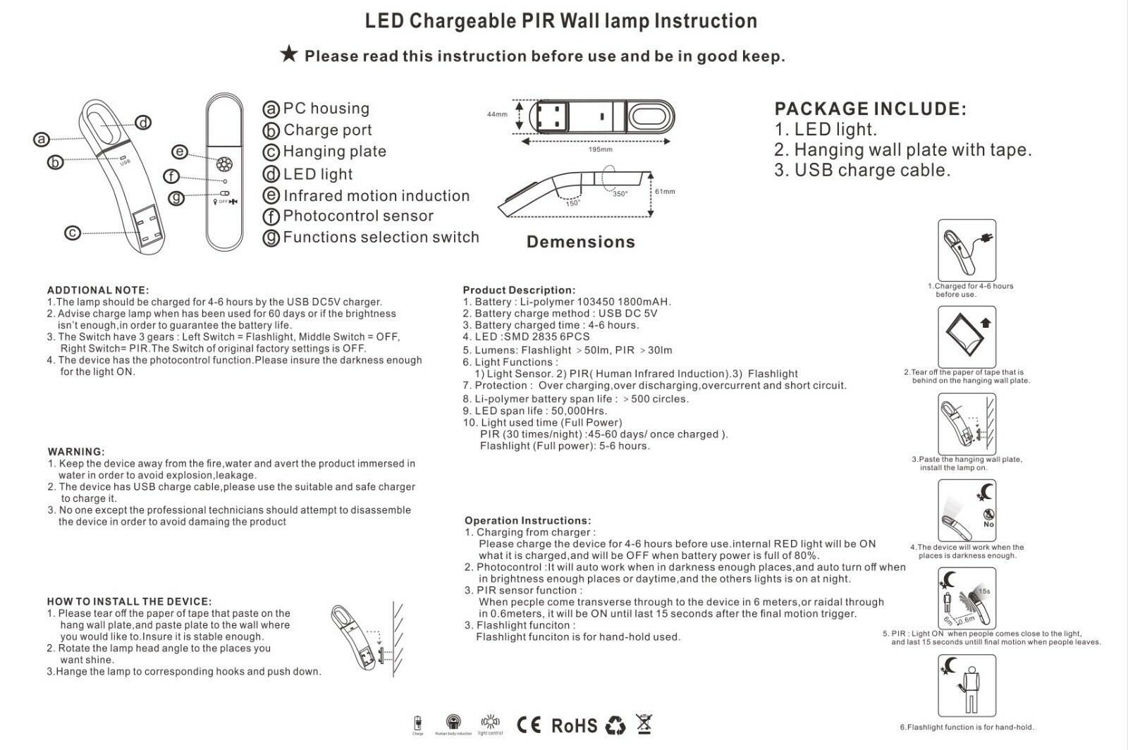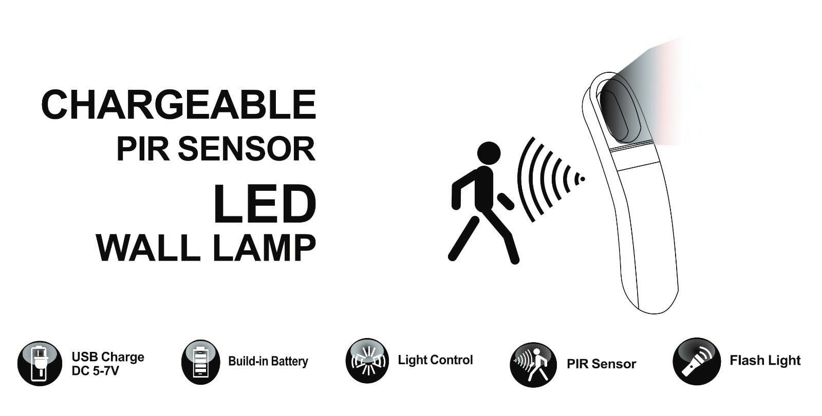 Δεν χρειάζεται μπαταρίες, καθώς είναι επαναφορτιζόμενο! Θα το τοποθετήσετε όπου εσείς θέλετε με το αυτοκόλλητο που διαθέτει στο πίσω μέρος του, στον διάδρομο, στο μπάνιο, στο δωμάτιο, στην βιβλιοθήκη, στην μπαλκονόπορτα, στον κήπο, στις σκάλες, στην αποθήκη σας.