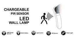 Επαναφορτιζόμενο Επιτοίχιο LED Φωτιστικό με Αισθητήρα Κίνησης & Αυτοκόλλητο - Chargeable PIR Sensor LED Wall Lamp