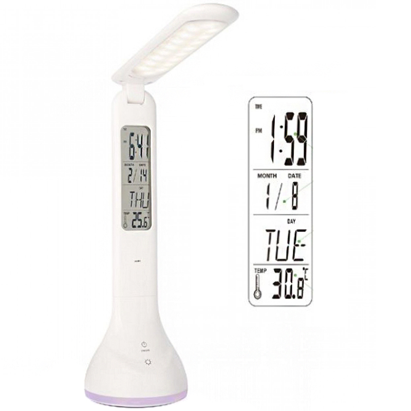 Επαναφορτιζόμενο Φωτιστικό Γραφείου Ατμοσφαιρικού Χρωματιστού RGB Φωτισμού με Οθόνη, Ρολόι, Ξυπνητήρι, Ημερολόγιο, Θερμόμετρο LED Επιτραπέζιο 4w