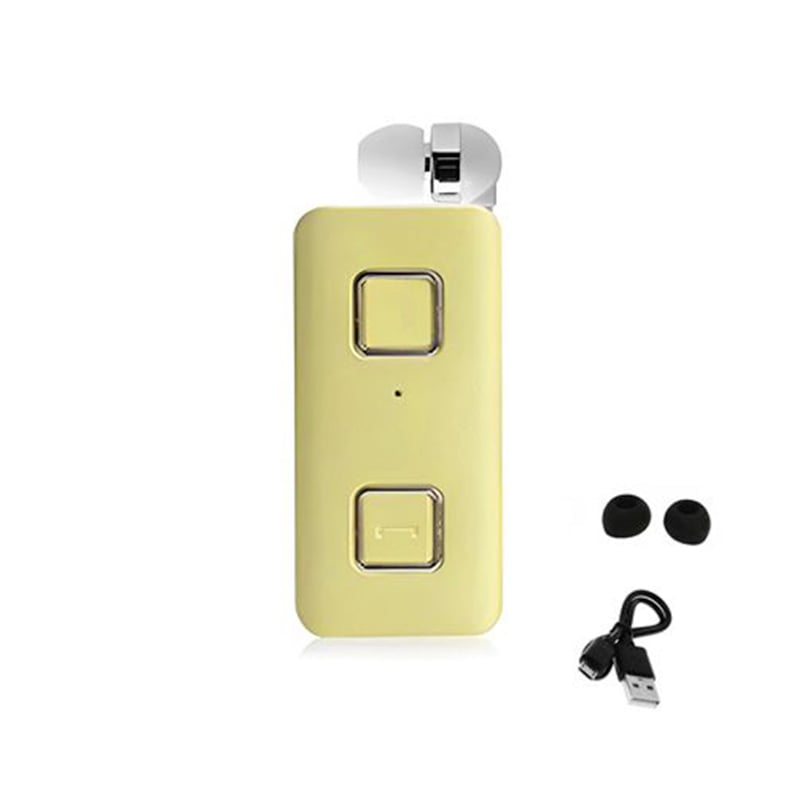 Επαναφορτιζόμενο HandsFree Ακουστικό Bluetooth Πέτου με Δόνηση & Ενσωματωμένο μικρόφωνο, Ανασυρόμενο Ακουστικό Clip Χρυσό