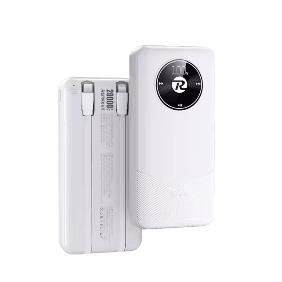 Επαναφορτιζόμενο Power Bank 20000 mAh με 2 Καλώδια Γρήγορης Φόρτισης και Θύρες USB & Type-C - Remax - Λευκό