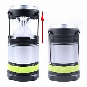 Όταν τον κρατάτε από την πλαϊνή λαβή χρησιμοποιείται σαν φακός ενώ όταν τον τραβάτε προς τα επάνω ανοίγουν αυτόματα τα 6 led και λειτουργεί σαν φωτιστικό.
