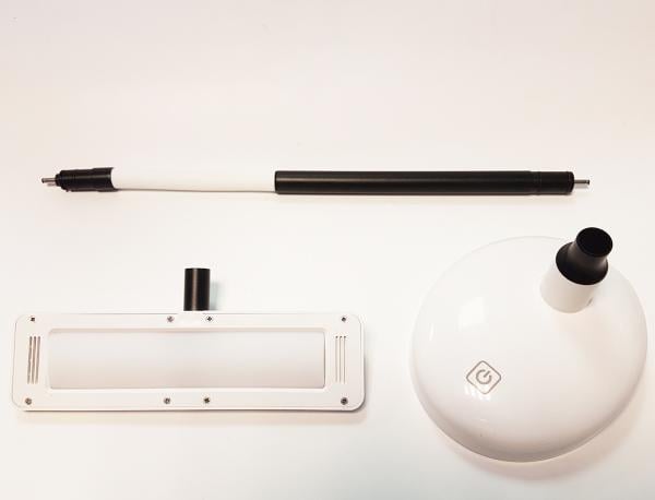 Είναι κατασκευασμένο από ποιοτικό ανοδιωμενο αλουμινιο και εύκαμπτο πλαστικό λαιμό για να στέκεται σε διάφορες γωνίες. Το καλώδιο του (USB to USB micro) είναι περίπου ένα μέτρο και μπορεί να χρησιμοποιηθεί για φορτιση κινητού.