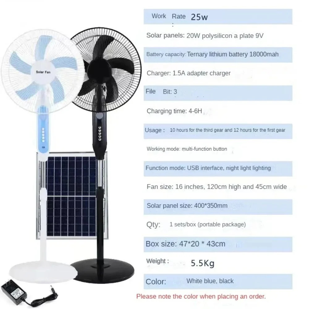 ✅ Χάρη στο ηλιακό πάνελ 20W και τη μπαταρία 18Ah λιθίου, ο ανεμιστήρας προσφέρει αυτονομία έως και 12 ώρες χωρίς την ανάγκη ρεύματος, καθιστώντας τον ιδανικό για χρήση σε αυλές, εξοχικά, κάμπινγκ ή περιοχές με συχνές διακοπές ρεύματος.