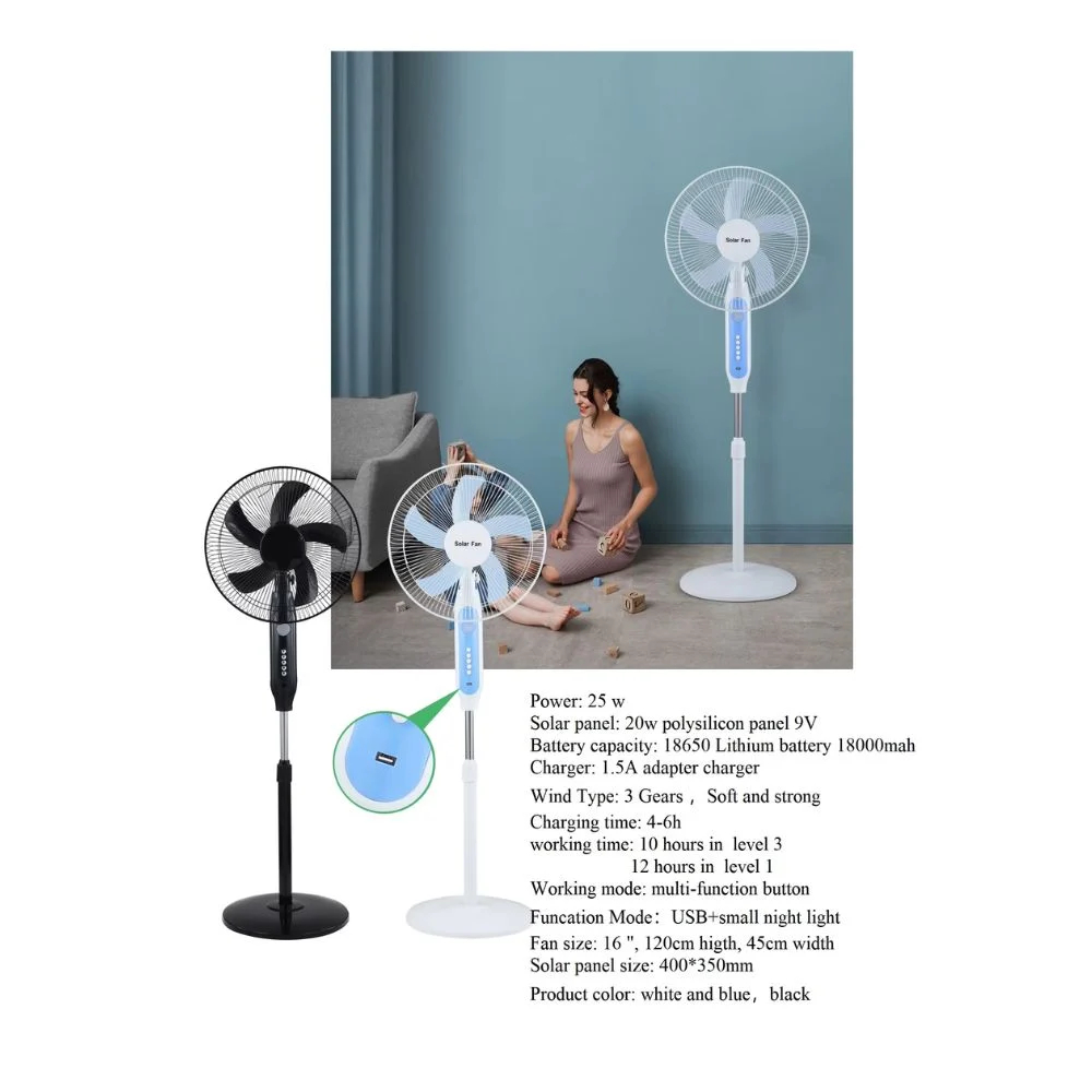 Επαναφορτιζόμενος Ανεμιστήρας Δαπέδου 16″ 3 Ταχυτήτων με Ηλιακό Πάνελ 25W - Μαύρο