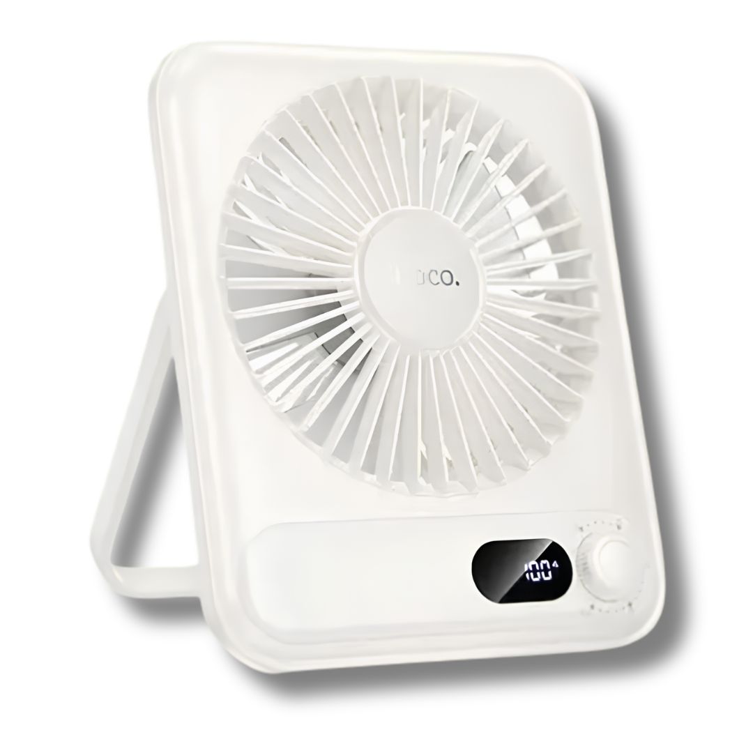 Επαναφορτιζόμενος Ανεμιστήρας Γραφείου Ultra Slim Αθόρυβος 2.5W με Οθόνη LED - HOCO - Λευκό