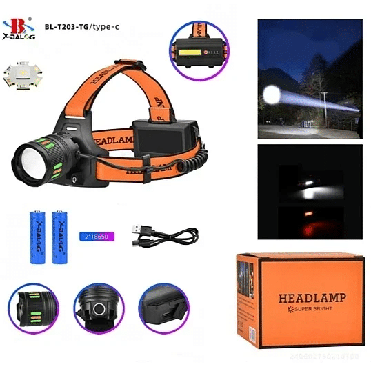 Επαναφορτιζόμενος Φακός Κεφαλής LED Zoom X-Balog με δυο Μπαταρίες 8800mAh