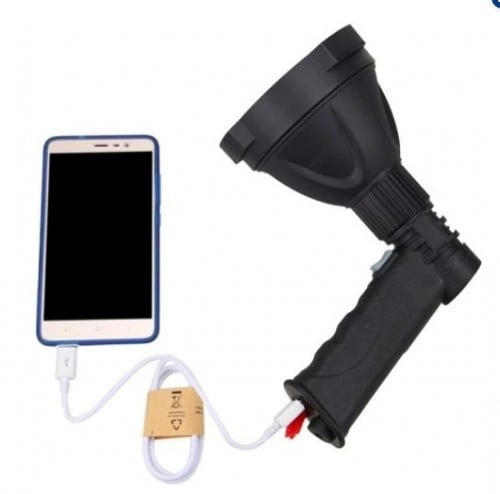 Φακός LED & Powerbank με πιστολοειδή λαβή υψηλής φωτεινότητας και απόδοσης. Ένας φακός για δύσκολες καταστάσεις! Επαναφορτιζόμενος φακός Cree Τ6 LED XML, με 3 επίπεδα φωτεινότητας 800 lumens, με εξαιρετικά συγκεντρωτική δέσμη που μπορεί να φωτίσει εκατοντάδες μέτρα μακρυά ! ( ορατός μέχρι και 3km σε ιδανικές συνθήκες )