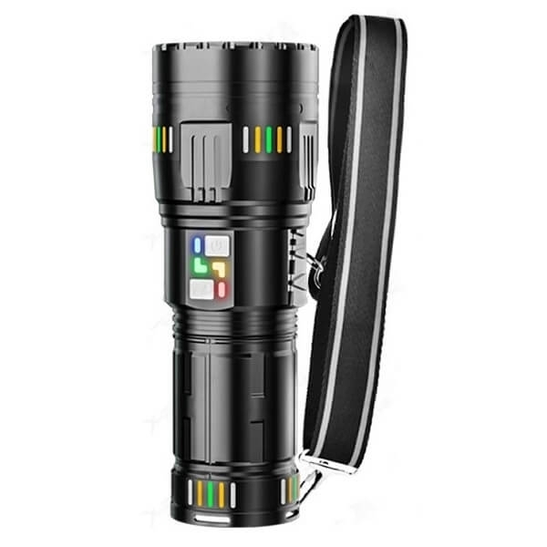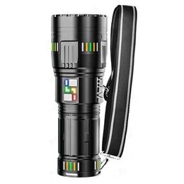 Φακός χειρός LED της X-Balog, κατάλληλος για χρήση σε δραστηριότητες όπως κατασκήνωση, πεζοπορία, ποδηλασία, κυνήγι, ψάρεμα ή κατά διάρκεια των εργασιών όπως επισκευές στο σπίτι. Είναι επαναφορτιζόμενος, λειτουργεί με 4 μπαταρίες 21700 (περιλαμβάνονται) με ένταση φωτισμού που φτάνει έως 30000lm