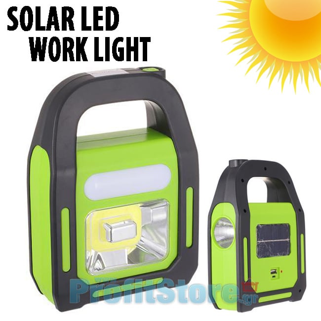 Επαναφορτιζόμενος Ηλιακός LED Φορητός Φακός & Φωτιστικό Εργασίας με Powerbank USB - Ultra Slim COB Working Light