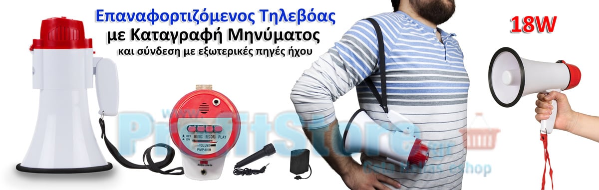 Επαναφορτιζόμενος Ισχυρός Τηλεβόας με δυνατότητα καταγραφής μηνύματος έως 9 δευτερόλεπτα και αυτόματη επανάληψη μηνύματος.