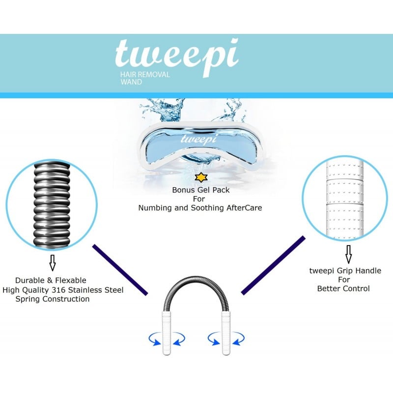 Η Συσκευή Αποτρίχωσης Tweepi Spring, μετατρέπει την αποτρίχωση σε παιχνιδάκι. O ειδικός σχεδιασμός της τυλίγεται γύρω από κάθε τρίχα και έπειτα τραβιέται έτσι ώστε να αφαιρείται ακόμη και η πιο κοντή και δυσδιάκριτη τρίχα.