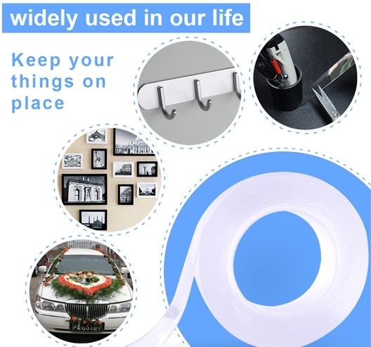 Πανίσχυρη διάφανη ταινία σιλικόνης διπλής όψης την οποίο μπορείτε να ξαναχρησιμοποιήσετε! Μπορείτε να κολλήσετε, να κρεμάσετε ή να στερεώσετε οτιδήποτε σε οποιαδήποτε επιφάνεια.