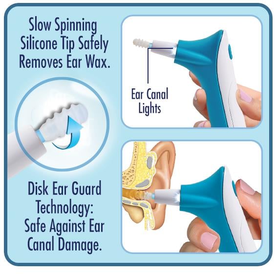 Επαναχρησιμοποιούμενο Ηλεκτρικό Καθαριστικό Αυτιών με LED - Συσκευή Καθαρισμού με 3 Κεφαλές - Ear Wax Cleaner