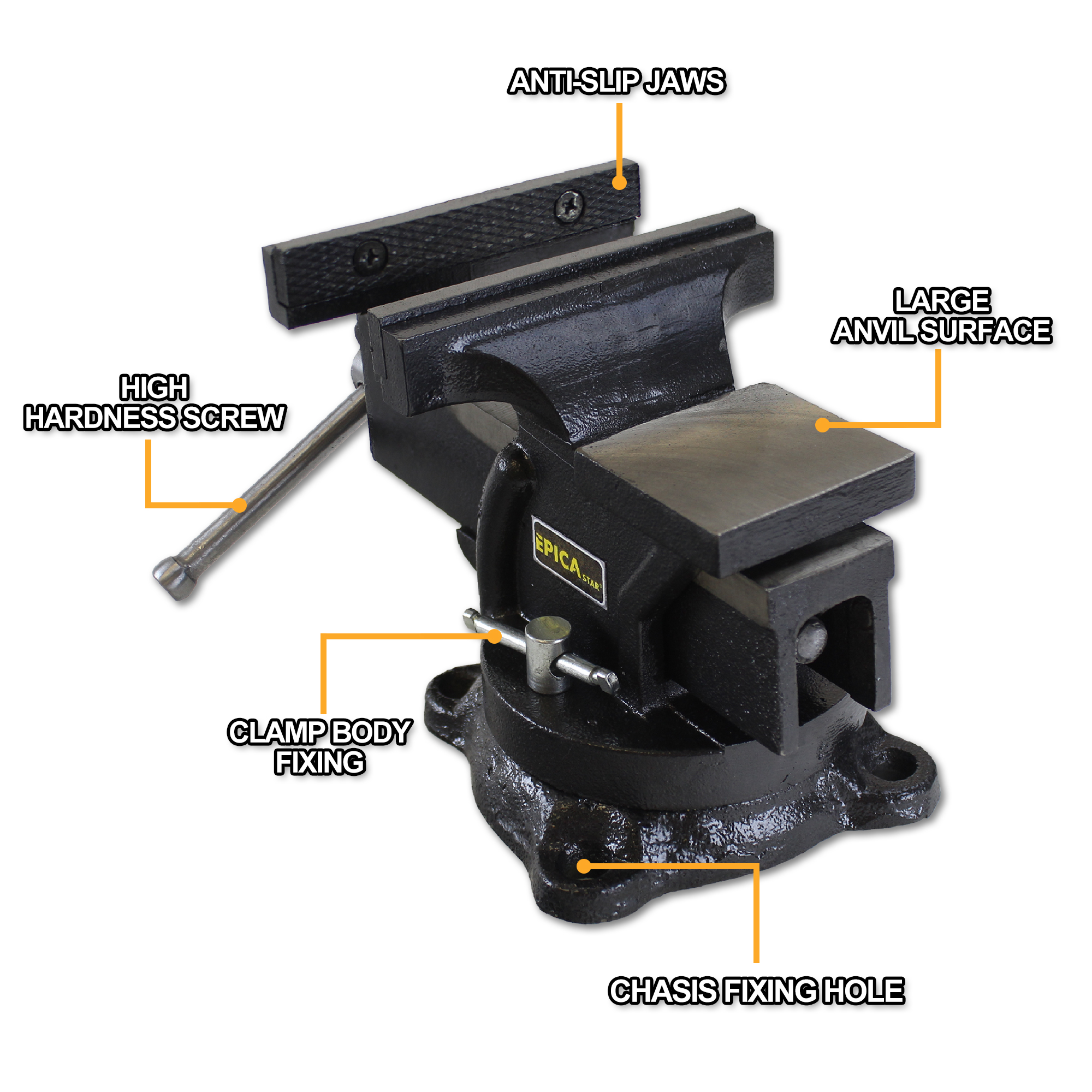 Περιστρεφόμενη μέγγενη πάγκου με σφιγκτήρα, βαρέως τύπου με την εγγύηση ποιότητας της Epica Star®!