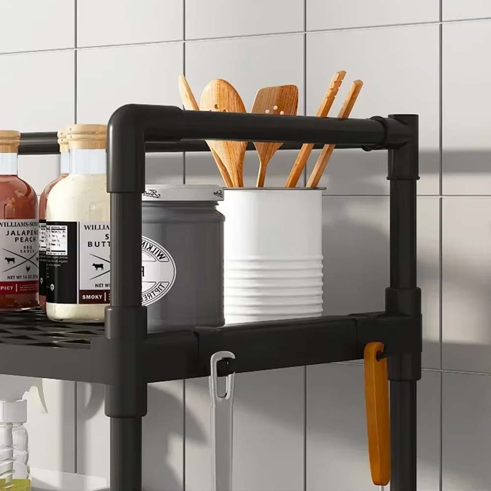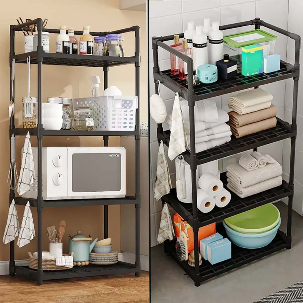 Επιδαπέδια Βάση Οργάνωσης Κουζίνας - Μπάνιου 4 Επιπέδων 48x26x113cm με Μεταλλικό Σκελετό και Γάντζους Μαύρη