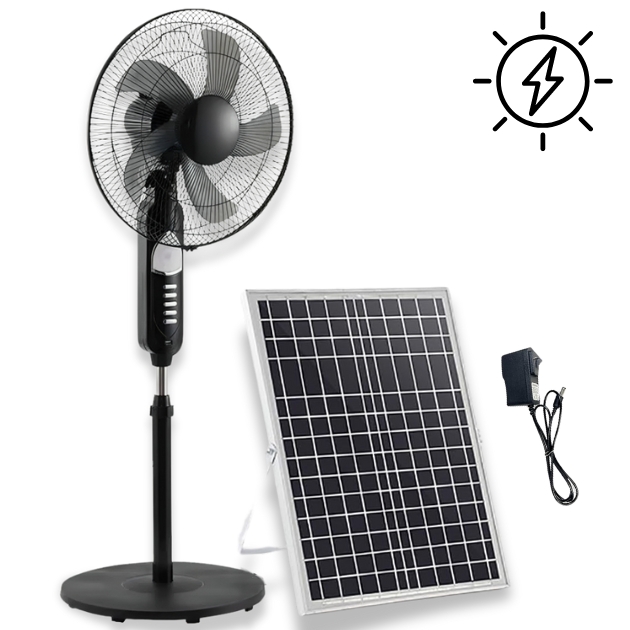 Επιπλέον, για ημέρες με περιορισμένο ηλιακό φως ή κατά τις νυχτερινές ώρες, ο ανεμιστήρας μπορεί να φορτιστεί άνετα χρησιμοποιώντας τον παρεχόμενο μετασχηματιστή εναλλασσόμενου ρεύματος.