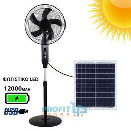 Επιδαπέδιος Ηλιακός Πτυσσόμενος Αυτόνομος Φορητός Ανεμιστήρας 43cm 25W με Επαναφορτιζόμενη Μπαταρία 12000mAh - 3 Ταχύτητες - USB Powerbank Έξοδο Φόρτισης & Λάμπα LED