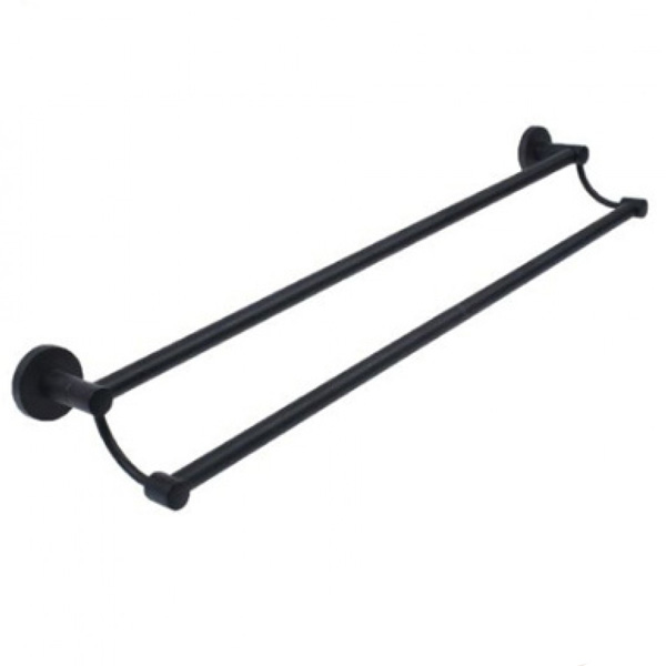 Επιτοίχια Διπλή Ράγα Πετσέτας Μπάνιου Κρεμάστρα Μαύρη Ματ